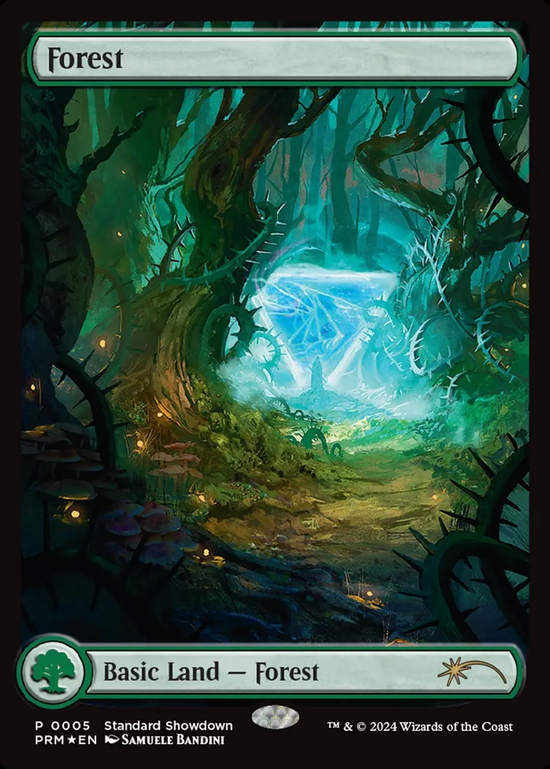 Magic: the Gathering (mtg) Rare Basic Land — Forest Forest from Standard Showdown Promos (pSSD) last updated 2025-12-13 15:56:32