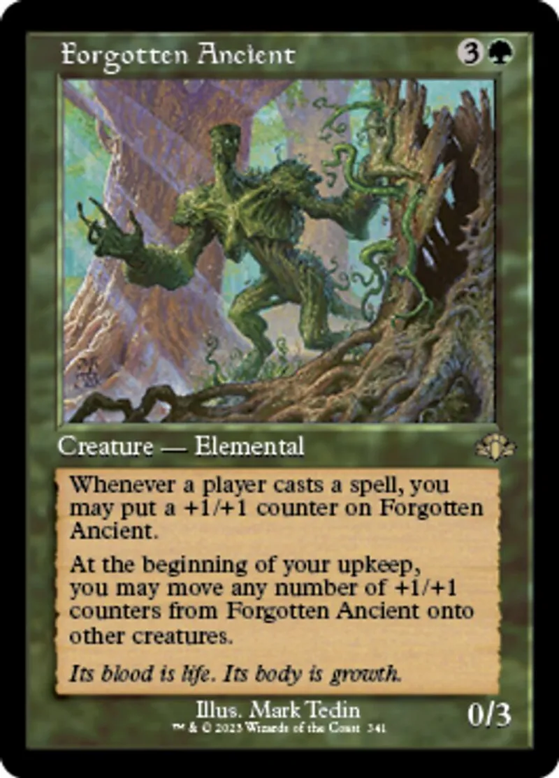 | Oracle Text | Whenever a player casts a spell, you may put a +1/+1 counter on Forgotten Ancient.