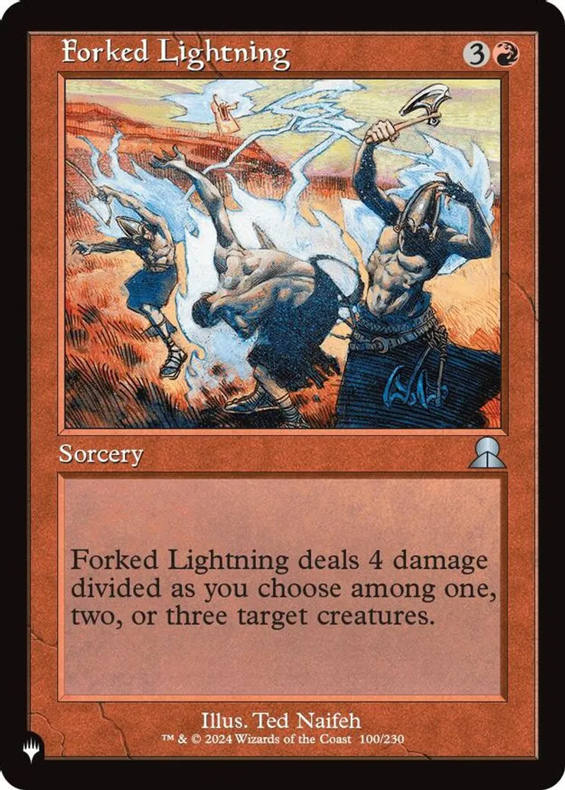 Magic: the Gathering (mtg) Rare sorcery Forked Lightning from The List Reprints (PLIST) last updated 2026-02-21 15:28:36