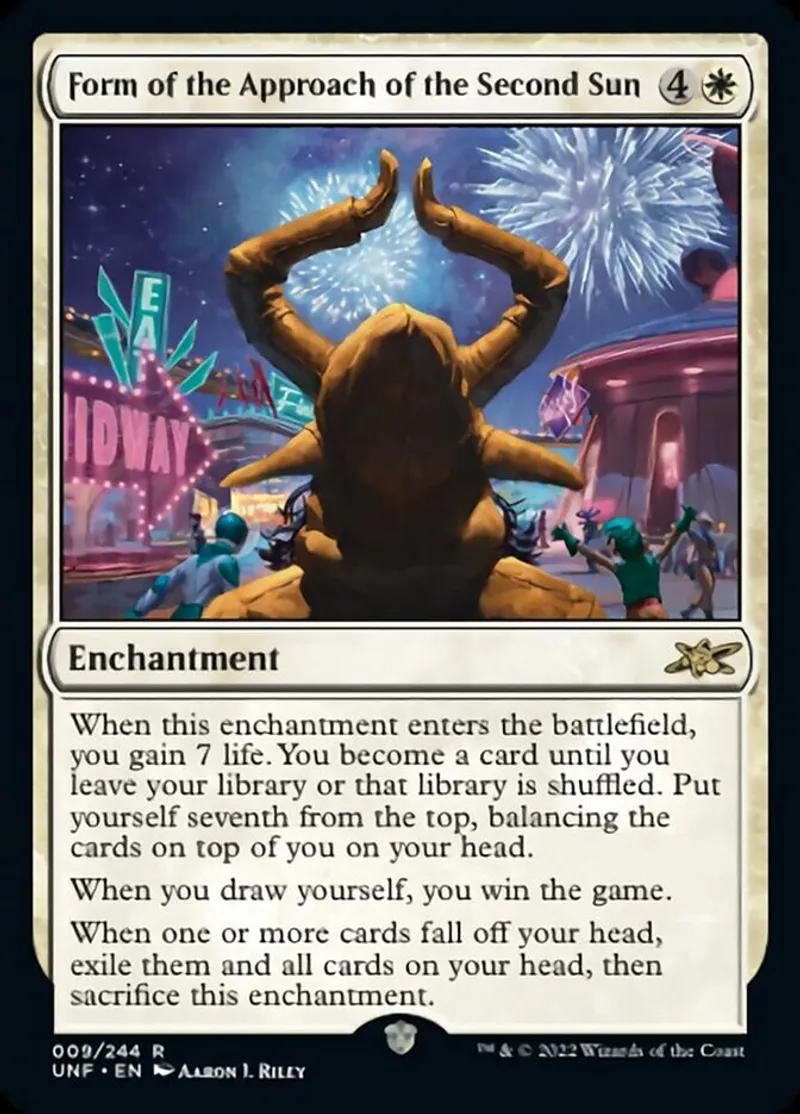 Magic: the Gathering (mtg) rare Enchantment Form of the Approach of the Second Sun from Unfinity (unf) last updated 2026-02-21 16:12:01