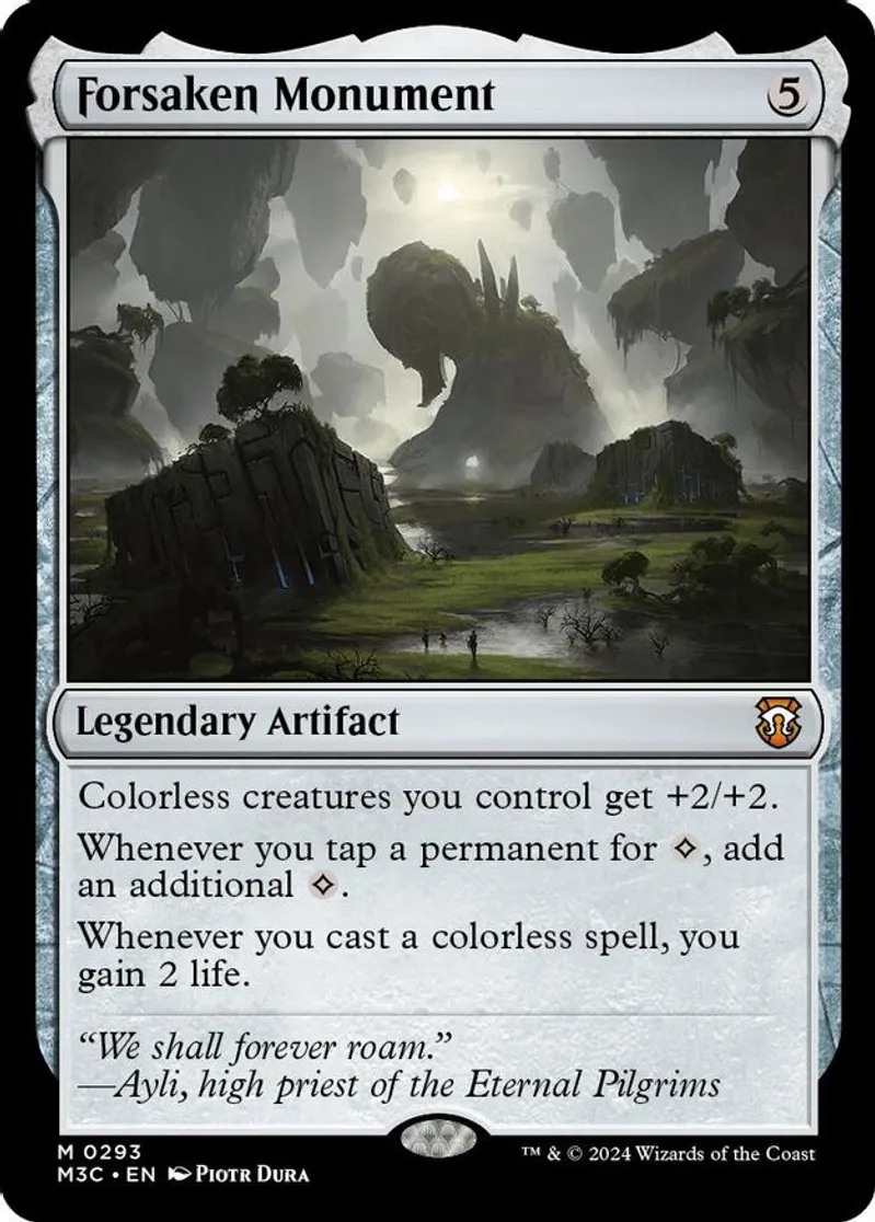 Magic: the Gathering (mtg) Mythic Rare legendary artifact Forsaken Monument from Modern Horizons 3 Commander (M3C) last updated 2026-02-25 14:19:31