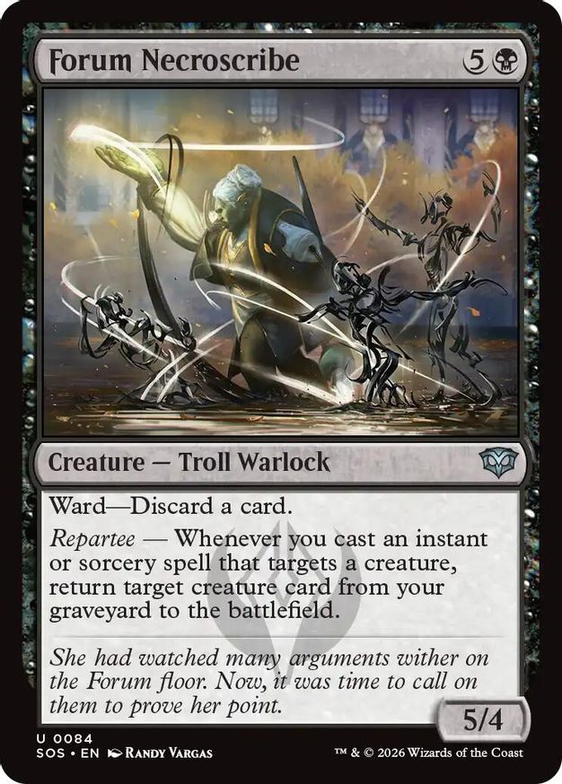 Magic: the Gathering (mtg) Uncommon creature — troll warlock Forum Necroscribe from Secrets of Strixhaven (SOS) last updated 2026-04-16 23:16:07