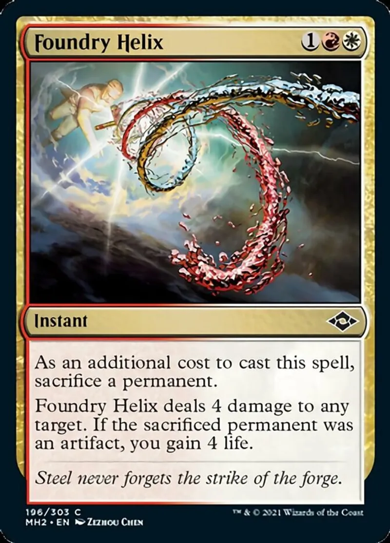 Foundry Helix deals 4 damage to any target. If the sacrificed permanent was an artifact, you gain 4 life. | ||