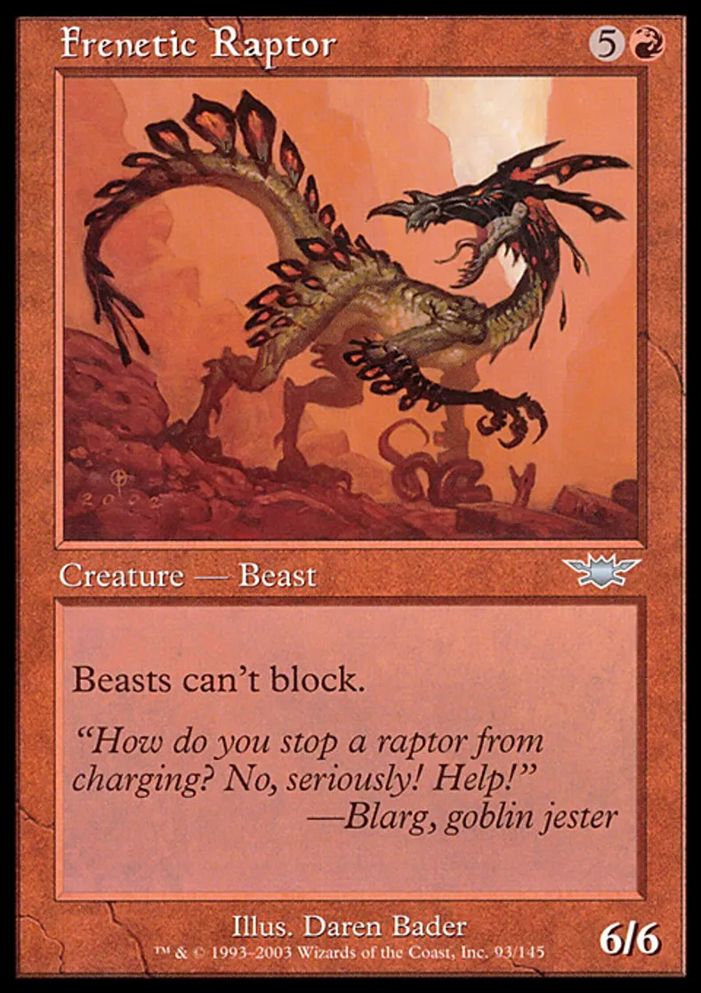 Magic: the Gathering (mtg) Uncommon Creature - Lizard Beast Frenetic Raptor from Legions (LGN) last updated 2026-02-21 17:38:31