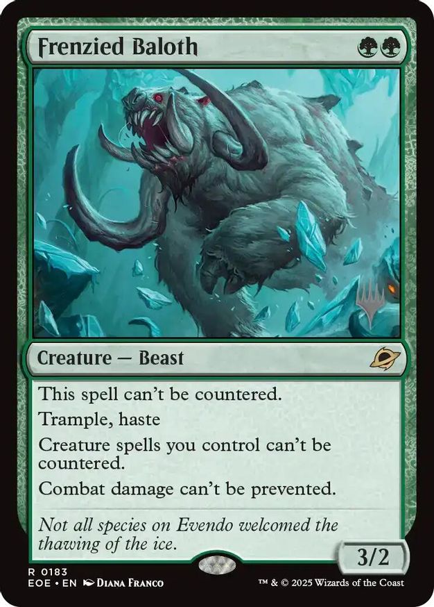 Magic: the Gathering (mtg) Rare creature — beast Frenzied Baloth from Promo Pack: Edge of Eternities (PPEOE) last updated 2025-12-04 14:50:02