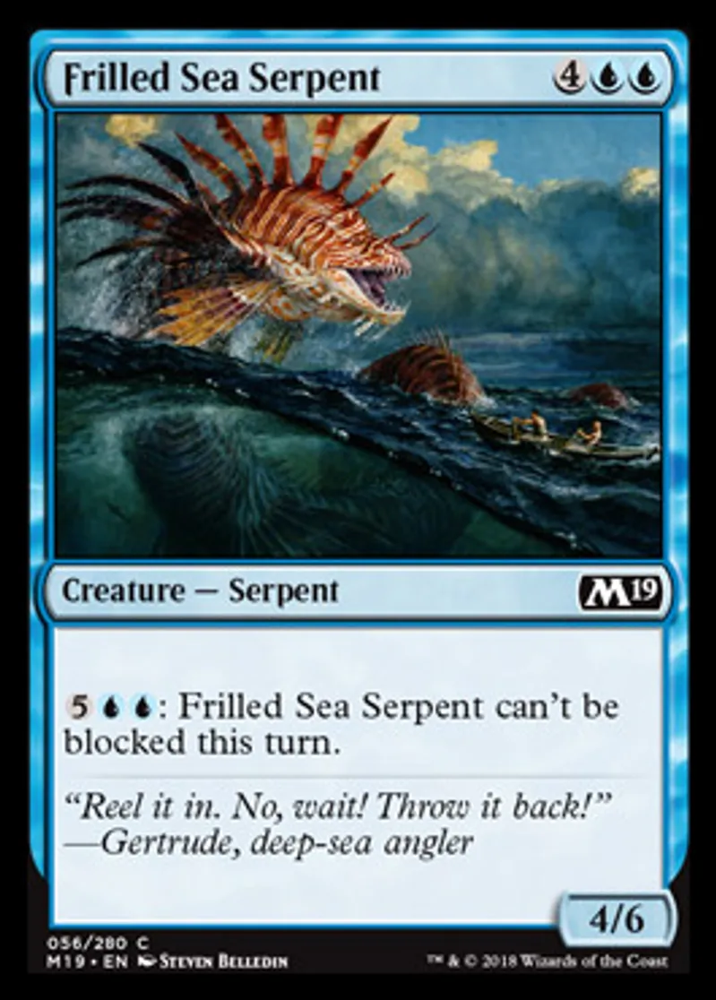 Magic: the Gathering (mtg) Common Creature - Serpent Frilled Sea Serpent from Core Set 2019 (M19) last updated 2026-02-21 16:53:03