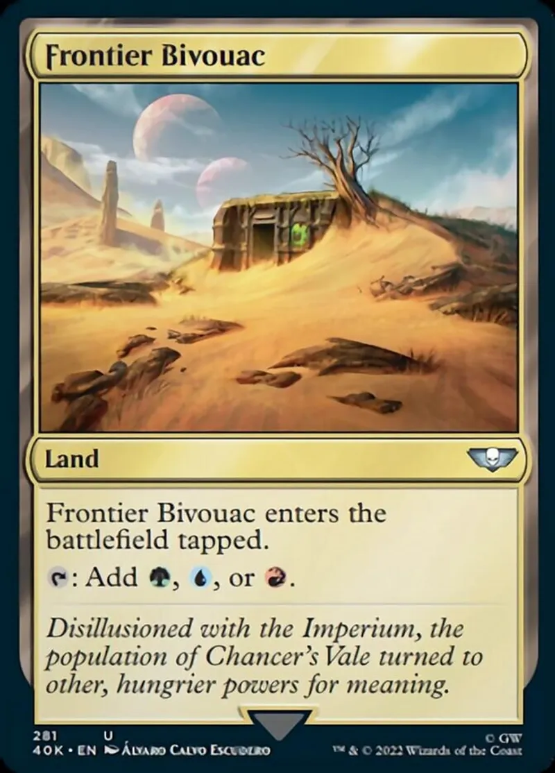 Magic: the Gathering (mtg) uncommon Land Frontier Bivouac from Warhammer 40,000 (40k) last updated 2026-02-24 15:39:02