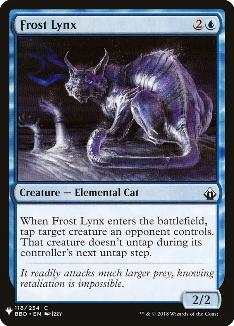 | Oracle Text | When Frost Lynx enters the battlefield, tap target creature an opponent controls. That creature doesn't untap during its controller's next untap step. | ||
