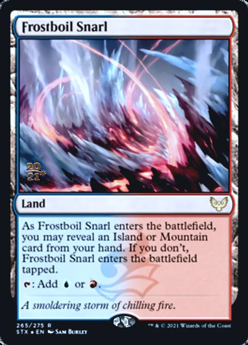| Oracle Text | As Frostboil Snarl enters the battlefield, you may reveal an Island or Mountain card from your hand. If you don’t, Frostboil Snarl enters the battlefield tapped.