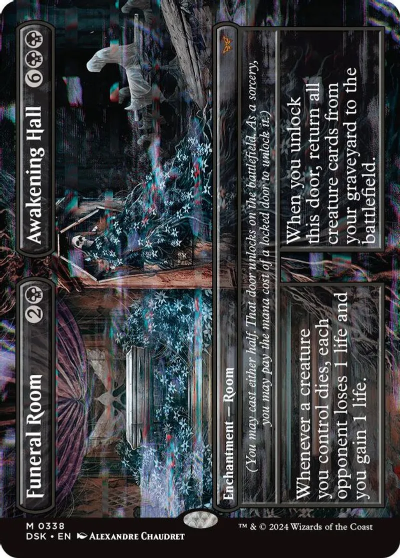 Magic: the Gathering (mtg) Mythic Rare enchantment — room Funeral Room // Awakening Hall from Duskmourn: House of Horror (DSK) last updated 2026-02-25 14:20:36