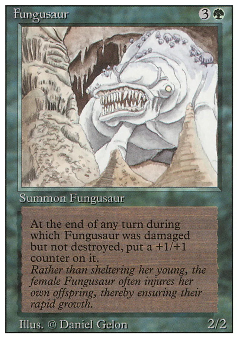 | Oracle Text | Whenever Fungusaur is dealt damage, put a +1/+1 counter on it. | ||