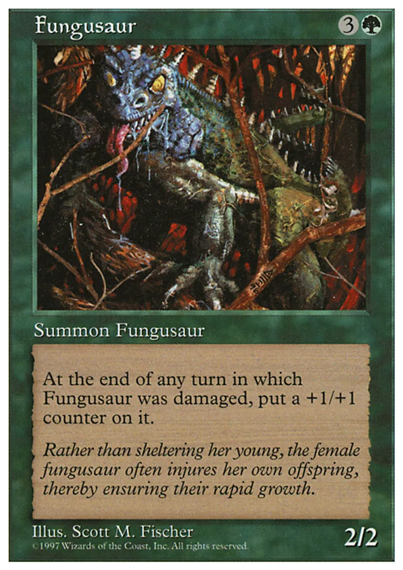 | Oracle Text | Whenever Fungusaur is dealt damage, put a +1/+1 counter on it. | ||