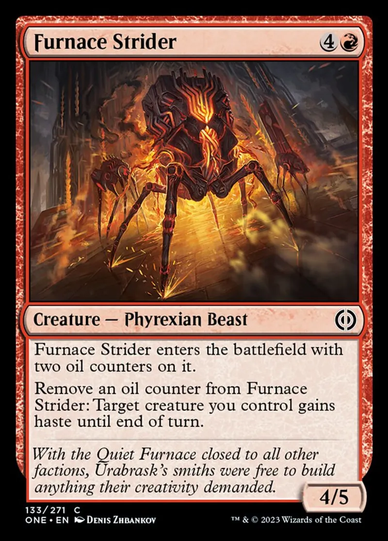 | Oracle Text | Furnace Strider enters the battlefield with two oil counters on it.