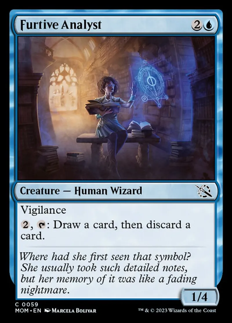 Magic: the Gathering (mtg) common Creature — Human Wizard Furtive Analyst from March of the Machine (mom) last updated 2026-02-21 16:22:32