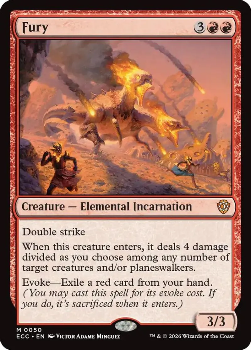 Magic: the Gathering (mtg) Mythic Rare creature — elemental incarnation Fury from Commander: Lorwyn Eclipsed (ECC) last updated 2026-01-11 16:11:01