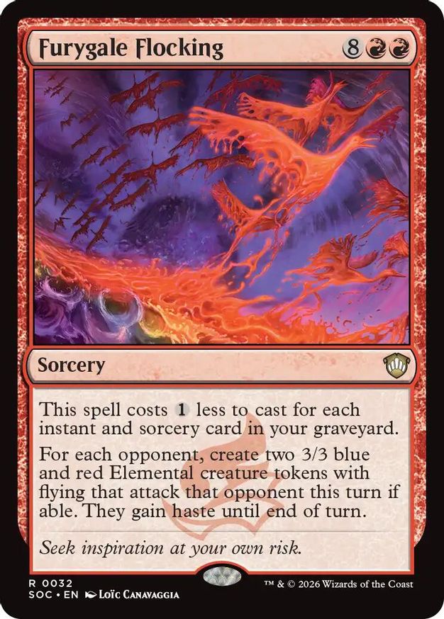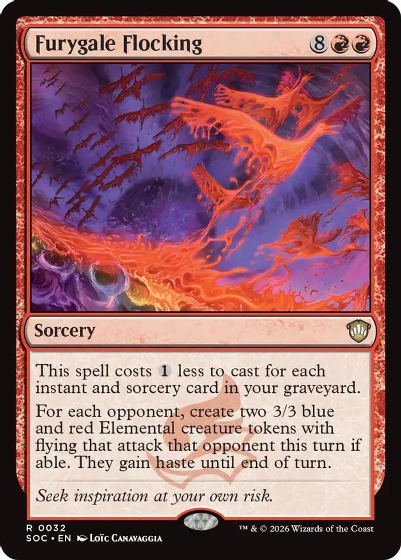 Magic: the Gathering (mtg) Rare sorcery Furygale Flocking from Commander: Secrets of Strixhaven (SOC) last updated 2026-04-17 14:55:06