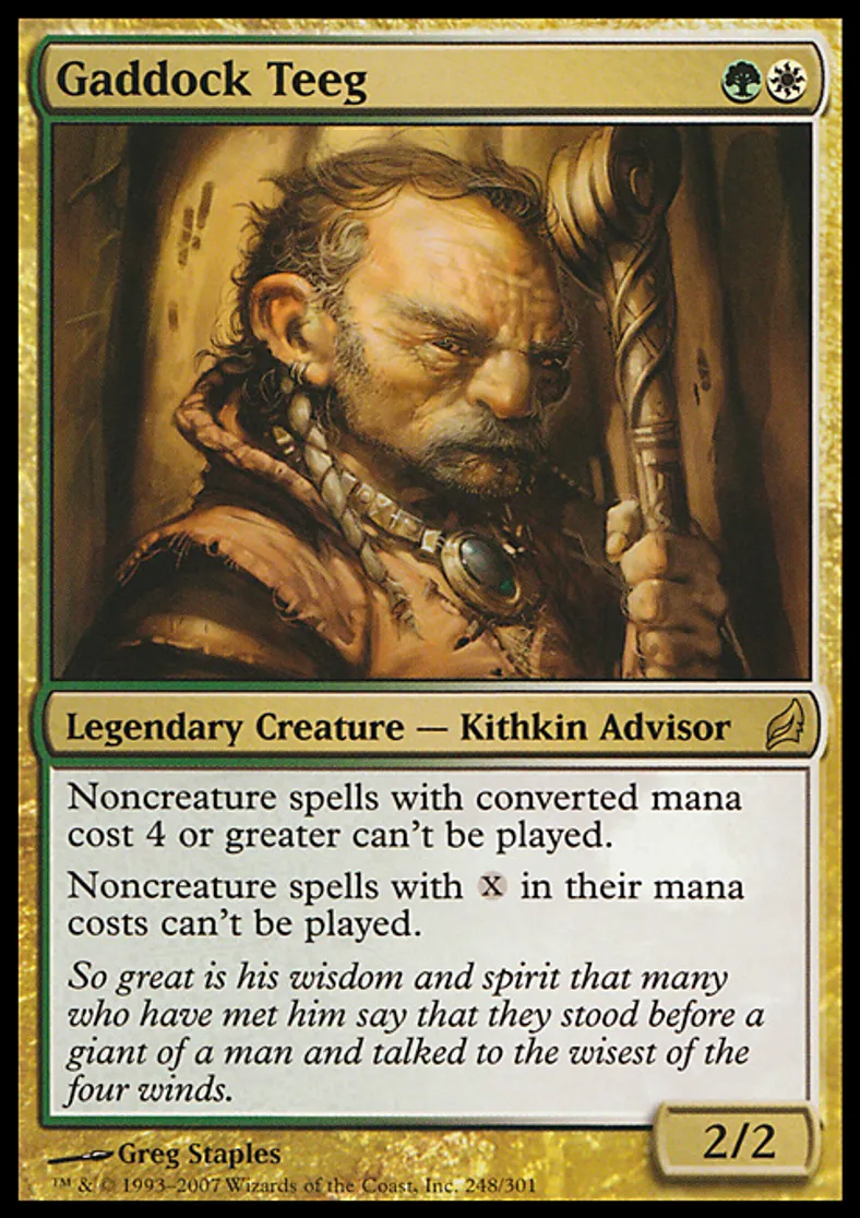 Magic: the Gathering (mtg) Rare Legendary Creature - Kithkin Advisor Gaddock Teeg from Lorwyn (LRW) last updated 2026-02-24 15:54:32