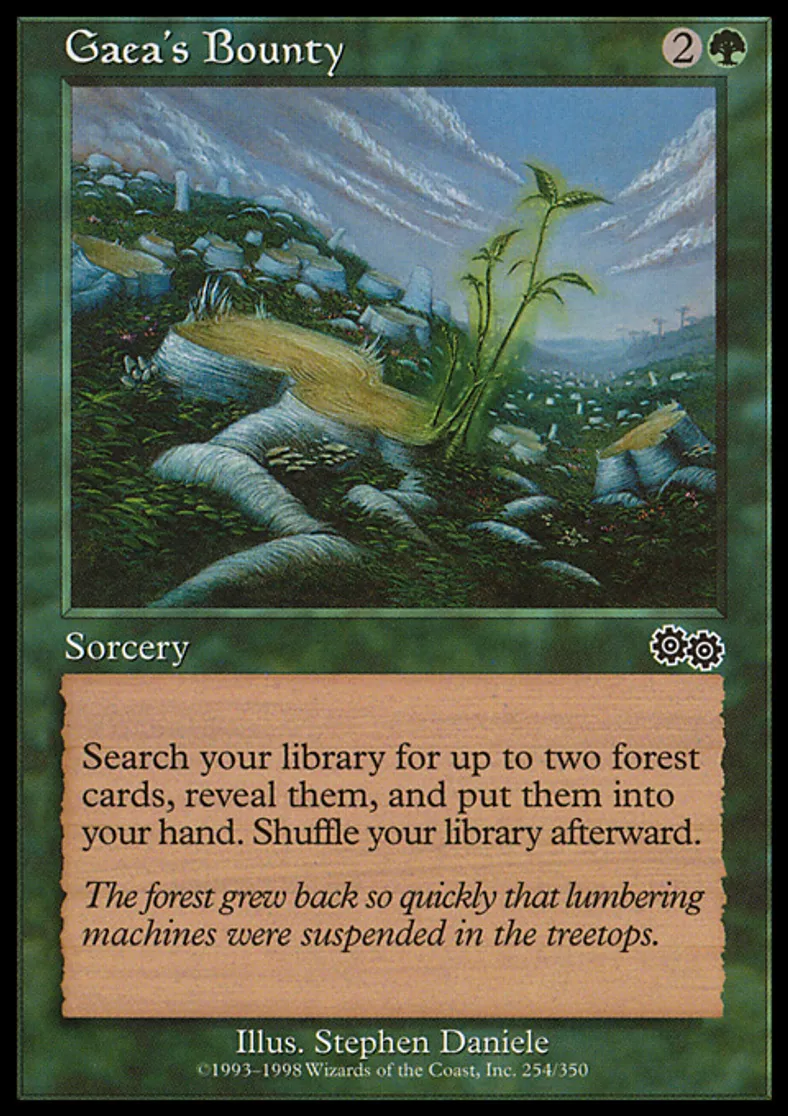 Magic: the Gathering (mtg) Common Sorcery Gaea's Bounty from Urza's Saga (USG) last updated 2026-02-21 17:31:32