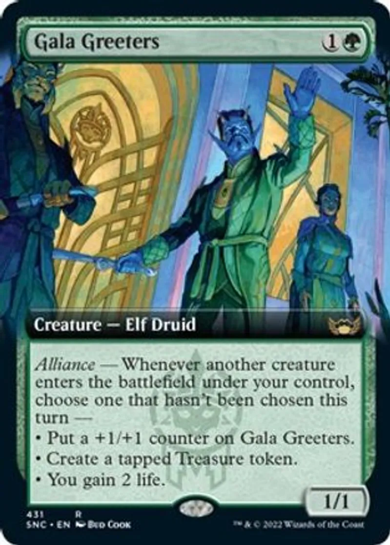 Magic: the Gathering (mtg) Rare Creature — Elf Druid Gala Greeters from Streets of New Capenna (SNC) last updated 2026-02-24 15:36:36