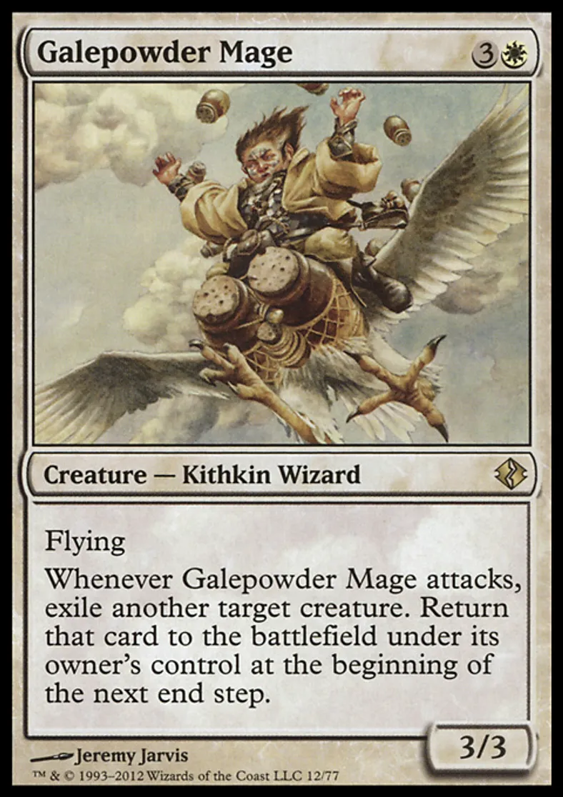 | Oracle Text | Flying Whenever Galepowder Mage attacks, exile another target creature. Return that card to the battlefield under its owner's control at the beginning of the next end step. | ||