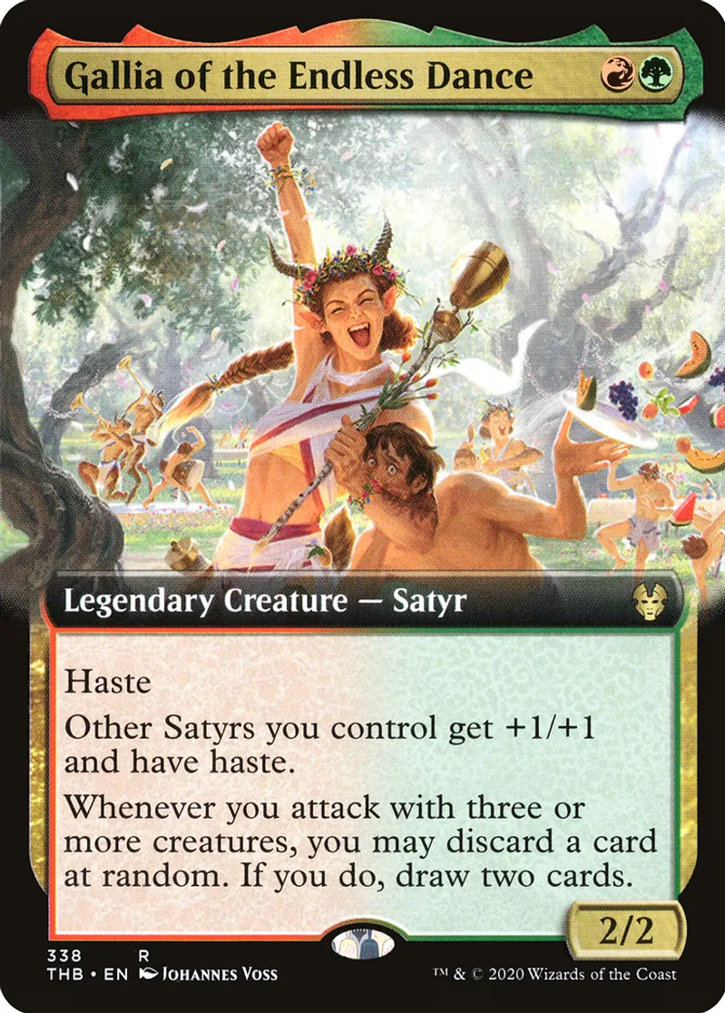 Magic: the Gathering (mtg) Rare Legendary Creature - Satyr Gallia of the Endless Dance from Theros Beyond Death (THB) last updated 2026-02-21 17:03:02