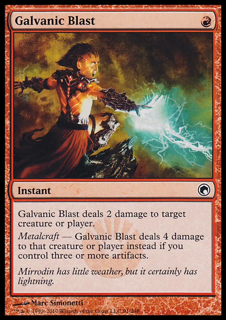 Galvanic Blast is a Common in the set Scars of Mirrodin.