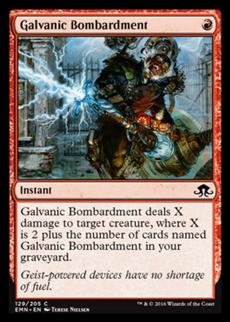 Galvanic Bombardment is a Common in the set Eldritch Moon.