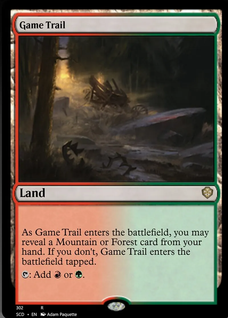 | Oracle Text | As Game Trail enters the battlefield, you may reveal a Mountain or Forest card from your hand. If you don't, Game Trail enters the battlefield tapped.