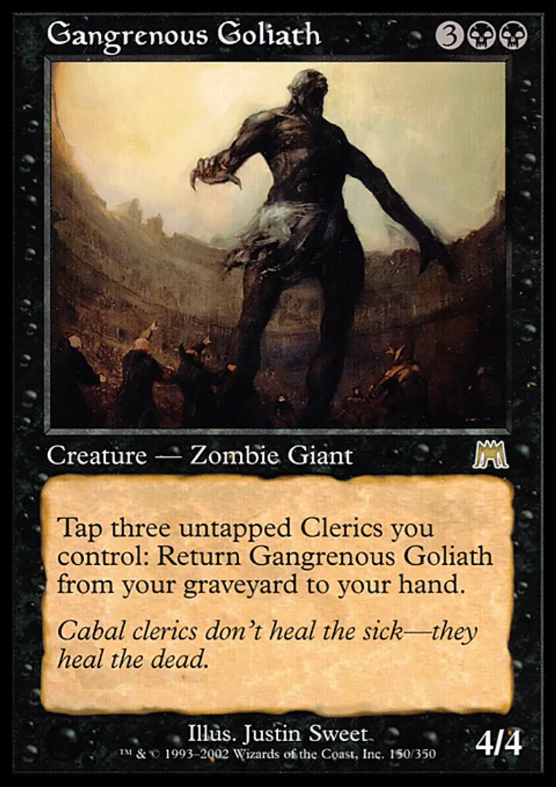 | Oracle Text | Tap three untapped Clerics you control: Return Gangrenous Goliath from your graveyard to your hand. | ||