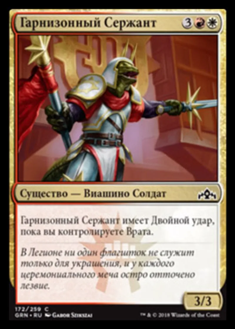 | Oracle Text | Garrison Sergeant has double strike as long as you control a Gate. | ||