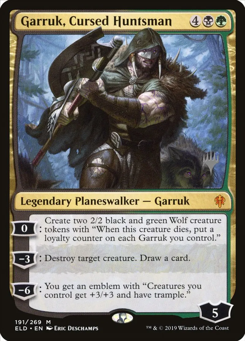 Magic: the Gathering (mtg) Mythic Rare Legendary Planeswalker - Garruk Garruk, Cursed Huntsman from Promo Pack: Throne of Eldraine (pELD) last updated 2026-02-25 15:26:32
