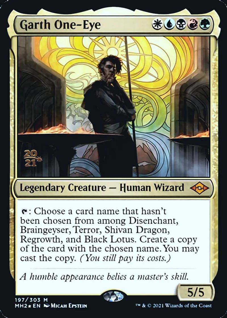 Magic: the Gathering (mtg) Mythic Rare Legendary Creature — Human Wizard Garth One-Eye from Prerelease Cards (pPRE) last updated 2026-02-24 14:34:02