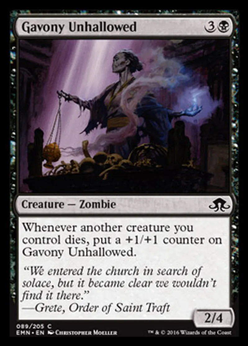 Magic: the Gathering (mtg) Common Creature - Zombie Gavony Unhallowed from Eldritch Moon (EMN) last updated 2026-02-21 17:25:02