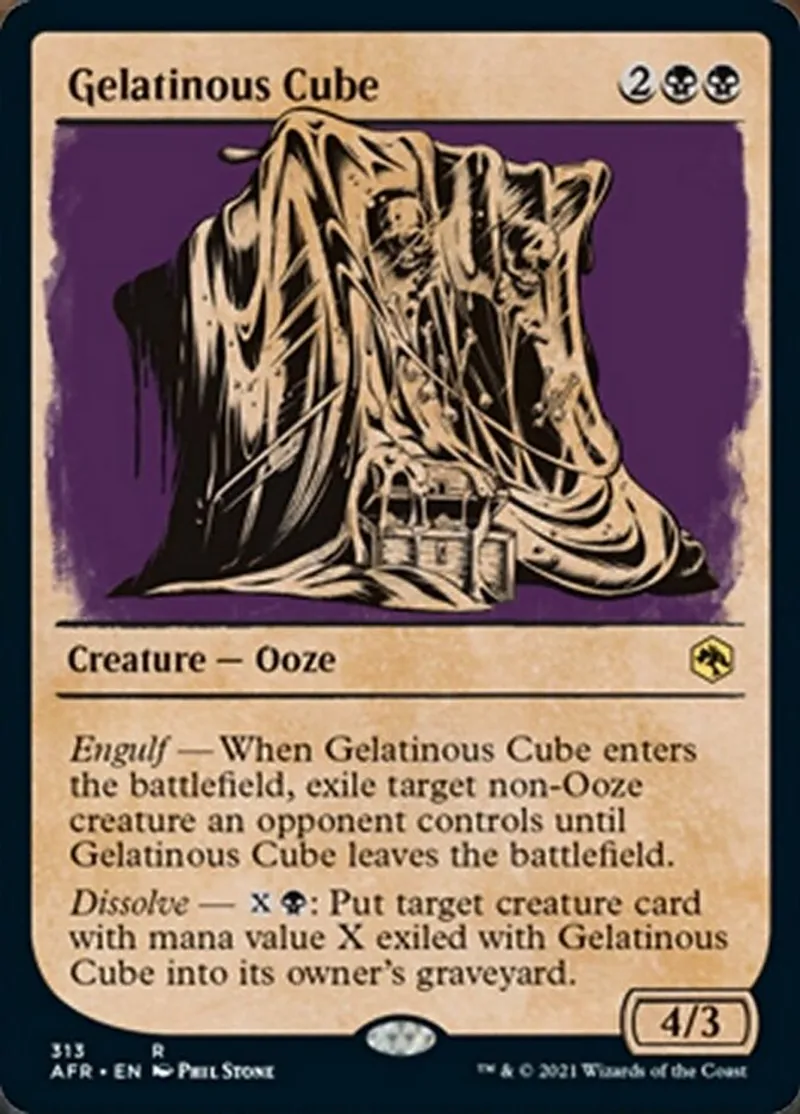| Oracle Text | Engulf — When Gelatinous Cube enters the battlefield, exile target non-Ooze creature an opponent controls until Gelatinous Cube leaves the battlefield.