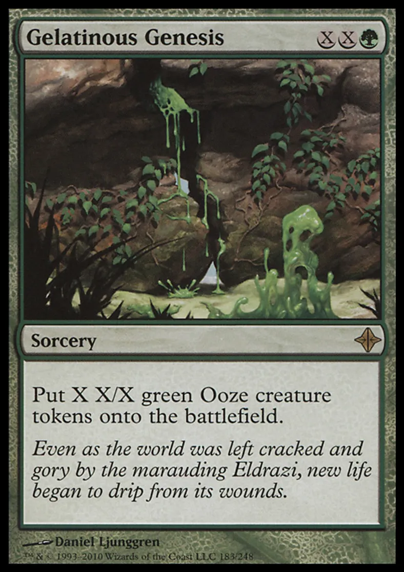 Magic: the Gathering (mtg) Rare Sorcery Gelatinous Genesis from Rise of the Eldrazi (ROE) last updated 2026-02-25 15:56:37