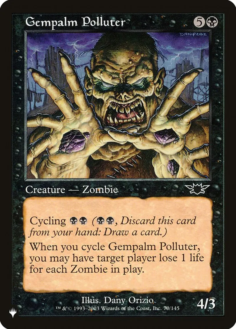 Magic: the Gathering (mtg) Common Creature — Zombie Gempalm Polluter from The List (plist) last updated 2026-02-21 16:30:03