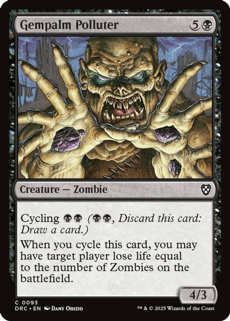 Magic: the Gathering (mtg) Common creature — zombie Gempalm Polluter from Commander: Aetherdrift (DRC) last updated 2026-02-21 15:37:31