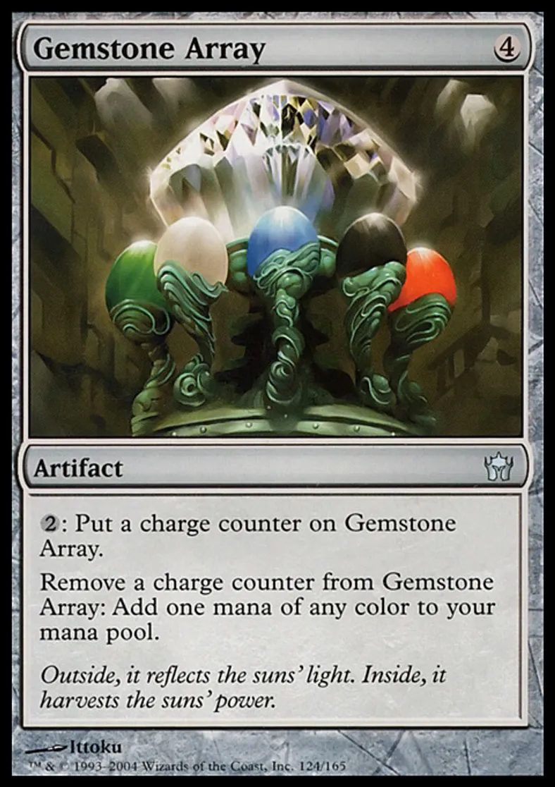 | Oracle Text | {{2}}: Put a charge counter on Gemstone Array. Remove a charge counter from Gemstone Array: Add one mana of any color to your mana pool. | ||