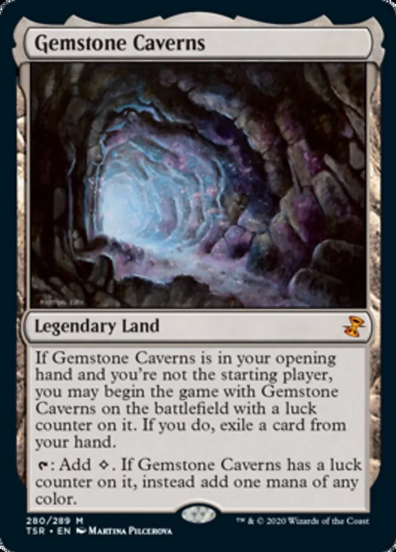 | Oracle Text | If Gemstone Caverns is in your opening hand and you're not playing first, you may begin the game with Gemstone Caverns on the battlefield with a luck counter on it. If you do, exile a card from your hand.