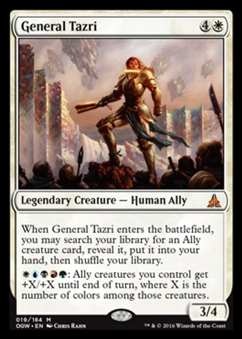 | Oracle Text | When General Tazri enters the battlefield, you may search your library for an Ally creature card, reveal it, put it into your hand, then shuffle your library.