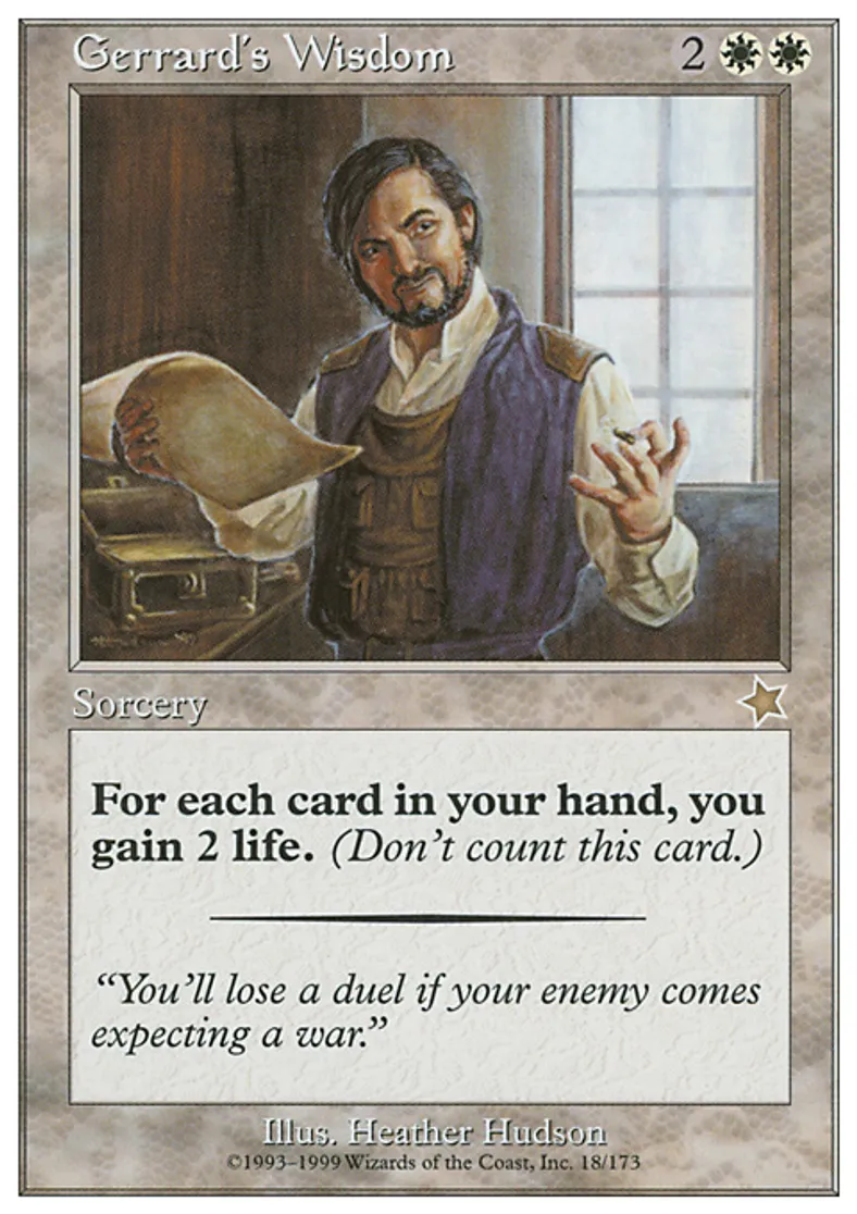 Magic: the Gathering (mtg) Rare Sorcery Gerrard's Wisdom from Starter 1999 (S99) last updated 2026-02-24 15:49:36