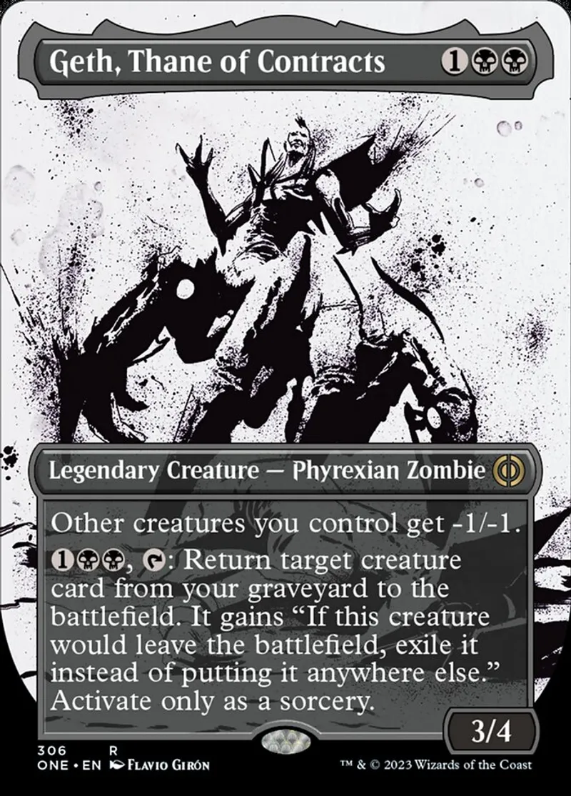 Magic: the Gathering (mtg) Rare Legendary Creature — Phyrexian Zombie Geth, Thane of Contracts from Phyrexia: All Will Be One (one) last updated 2026-02-21 16:21:02