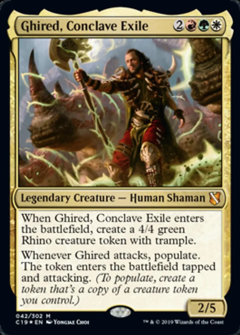 Magic: the Gathering (mtg) Mythic Rare Legendary Creature — Human Shaman Ghired, Conclave Exile from Commander 2019 (C19) last updated 2026-02-21 16:59:32