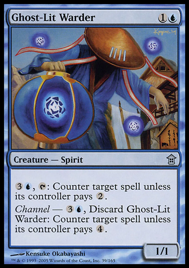 | Oracle Text | {{3}}{{u}}, {{t}}: Counter target spell unless its controller pays {{2}}. Channel — {{3}}{{u}}, Discard Ghost-Lit Warder: Counter target spell unless its controller pays {{4}}. | ||