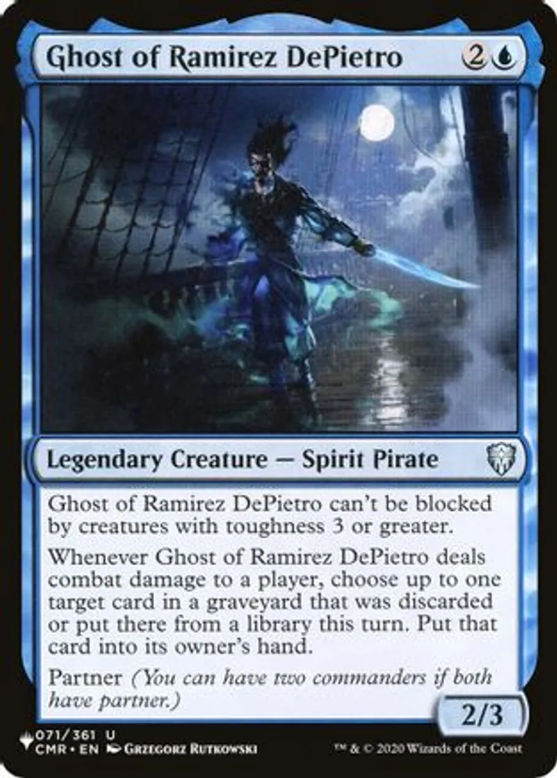 | Oracle Text | Ghost of Ramirez DePietro can't be blocked by creatures with toughness 3 or greater.