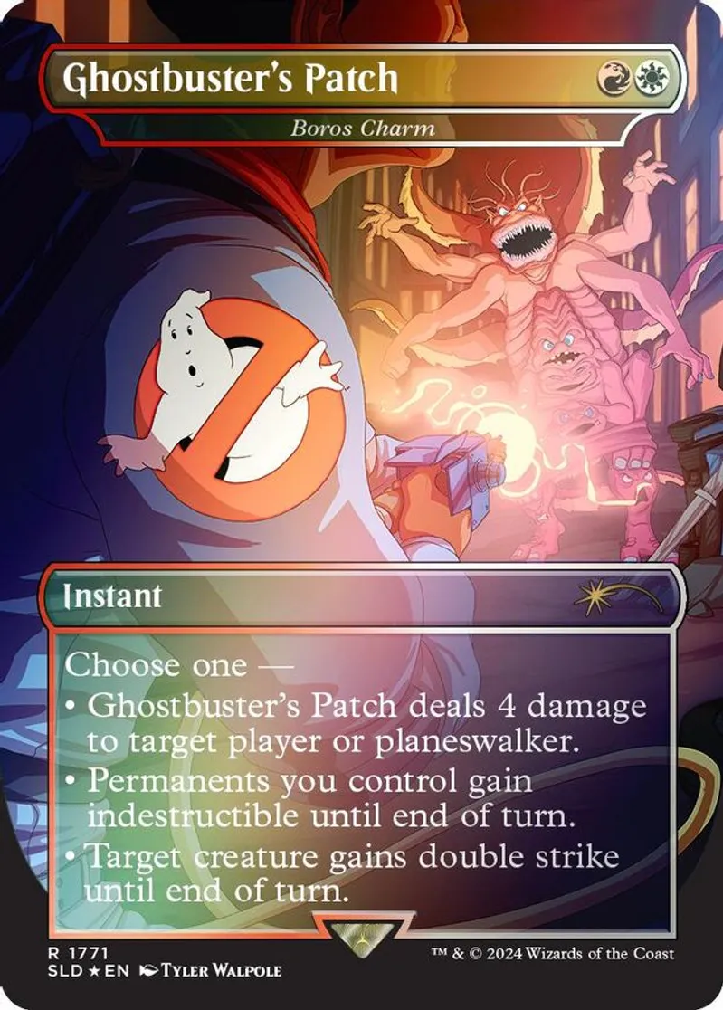 Magic: the Gathering (mtg) Rare instant Ghostbuster's Patch - Boros Charm from Secret Lair Drop Series (SLD) last updated 2025-12-14 14:18:02