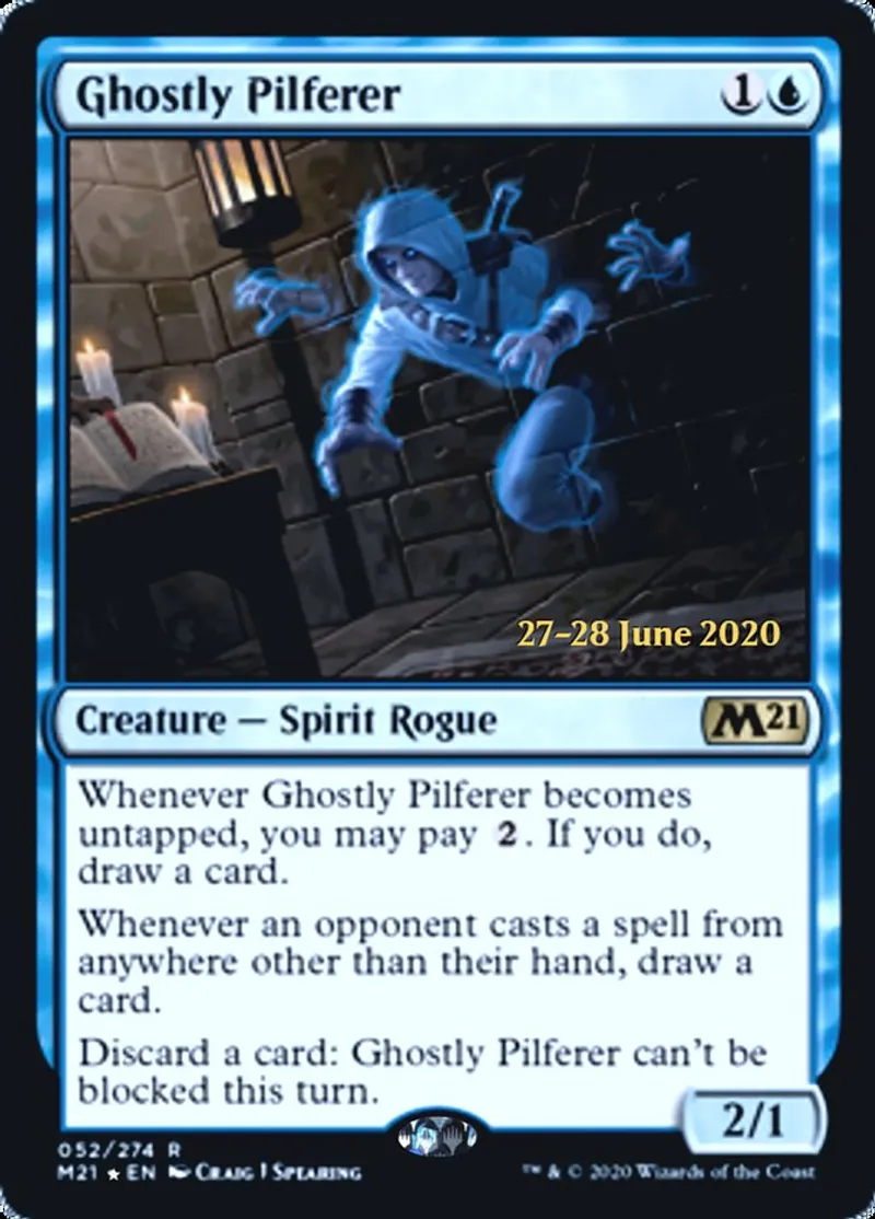 | Oracle Text | Whenever Ghostly Pilferer becomes untapped, you may pay {{2}}. If you do, draw a card.