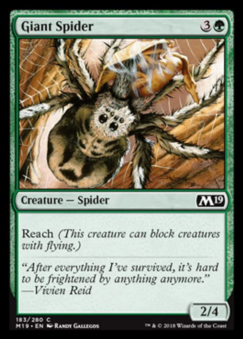 Magic: the Gathering (mtg) Common Creature - Spider Giant Spider from Core Set 2019 (M19) last updated 2026-02-21 16:53:03
