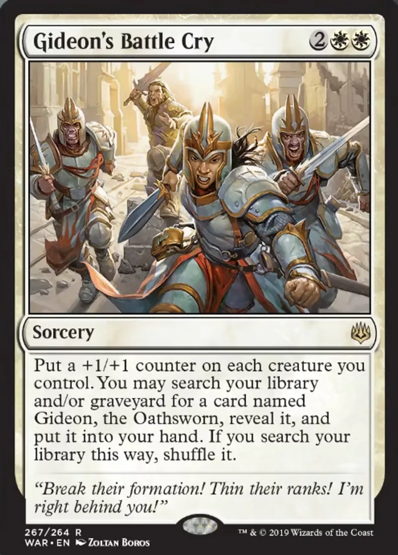 Gideon's Battle Cry is a Rare in the set War of the Spark.