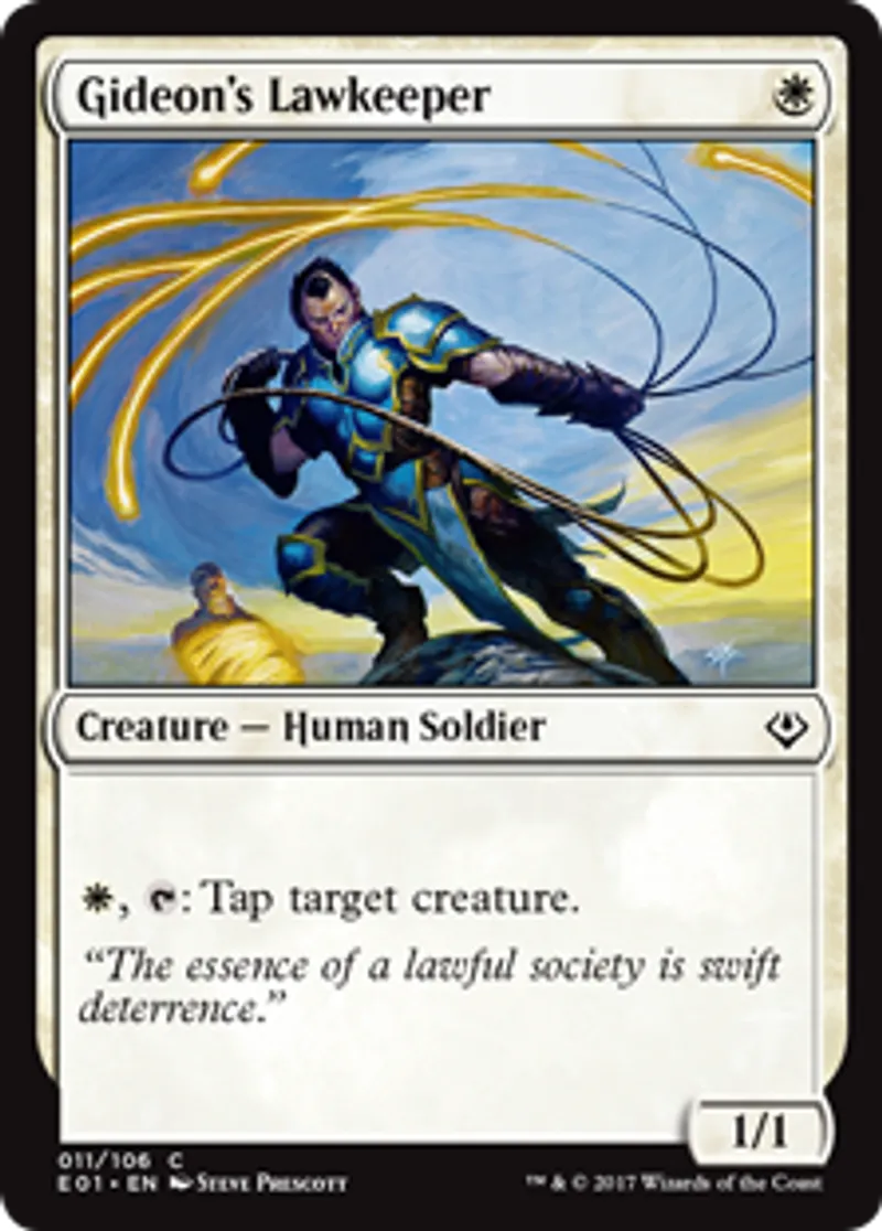 Gideon's Lawkeeper is a Common in the set Archenemy: Nicol Bolas.